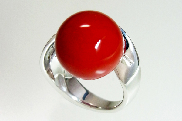 K18WGサンゴダイヤリング