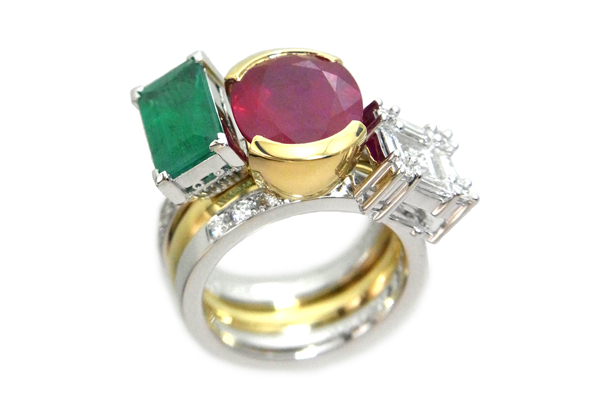 K18WGダイヤルビーエメラルドセットリング