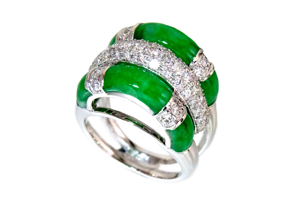K18WG ダイヤ/翡翠 リング